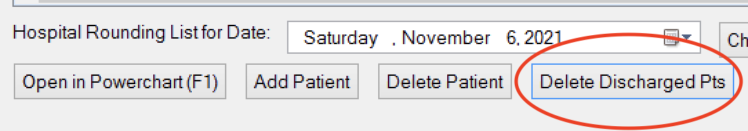 If you accidentally delete a patient, you can change the date of the list to yesterday's list, and see everyone that was on the list as of midnight. Remember to change the date back to today when you are through looking. You can also go to the Inpatient Service Assigner- log in with your email and same password you use for the online calendar- and click on the Discharged Patients menu to see recently deleted patients. You can click on the Assigments tab to see patients that were recently added to the list. You can also call Dr. Mahlow (865) 387-1585 if you need help (try to wait until after 6 AM).