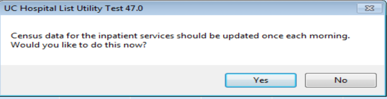 Click Print and enter your name when prompted. You will also be prompted to upload the census data to the server. This should be done once each morning. If you have to redo it, that is OK as long as it is still early in the morning before anyone has rounded. THIS IS A VERY IMPORTANT STEP AND SHOULD NOT BE SKIPPED.