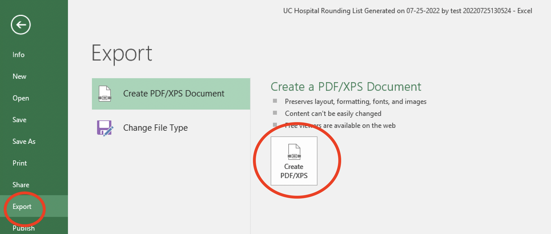 After you click Print, Microsoft Excel will open up with the list. You can choose File -> Export -> Create PDF. You can save the PDF to your desktop, then open up a web browser and go to your email (outlook.com), and send that PDF as an attachment to the group.