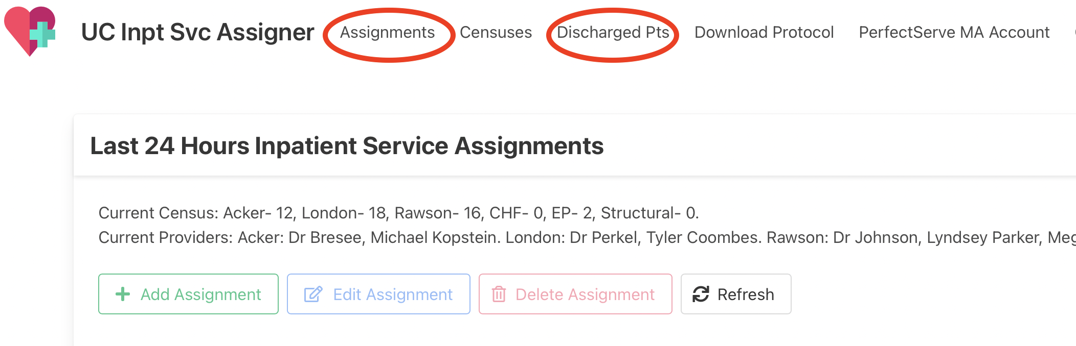 The Inpatient Service Assigner website can be found on uconcall.com or click here